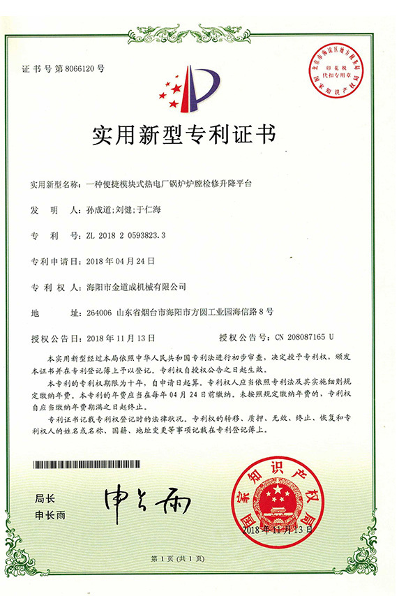 新聞中心下支撐折疊式鍋爐爐膛檢修平臺行業首項國家專利發明者